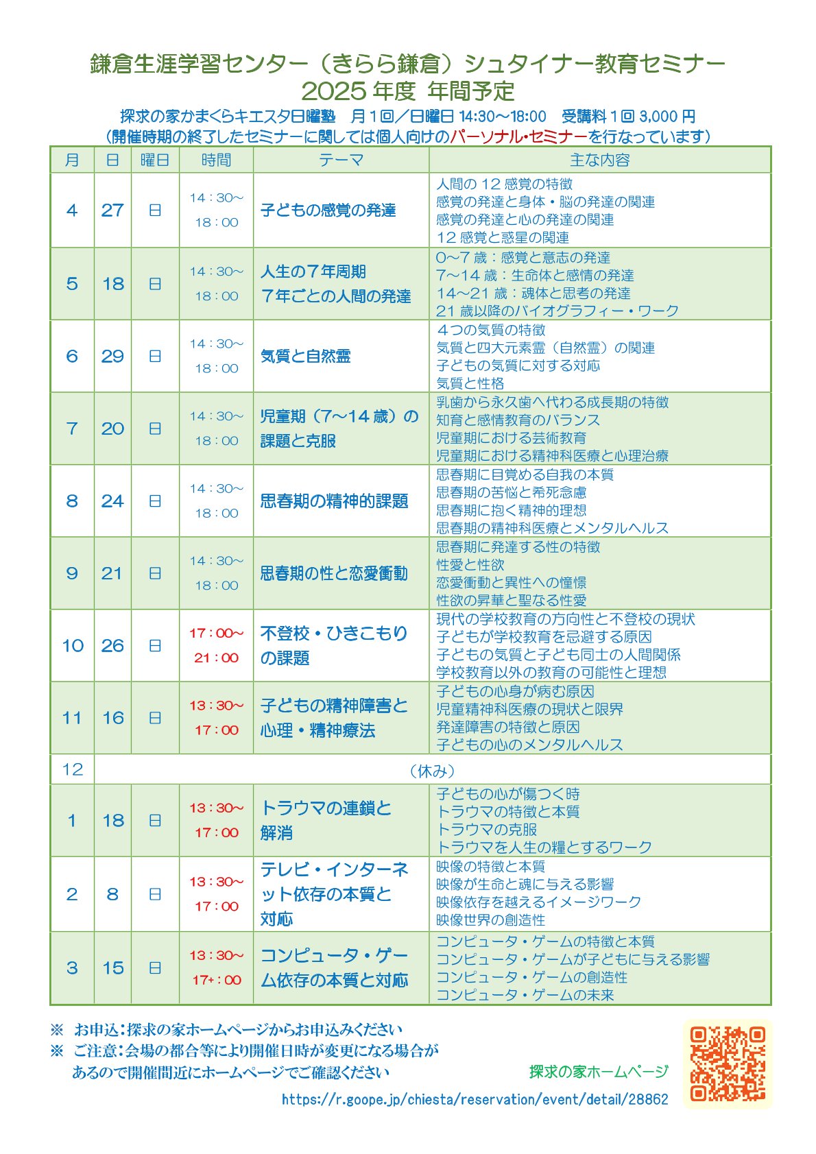 シュタイナー教育セミナー 【不登校・引きこもりの課題】