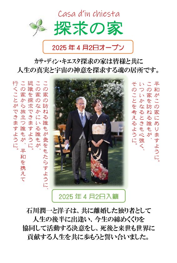 僕は14年間勤めていた行政機関の電話相談業務を3月末で退職し、人生の区切りとしての新年度から、早々の入籍と新たな活動「探求の家」の開設となった。