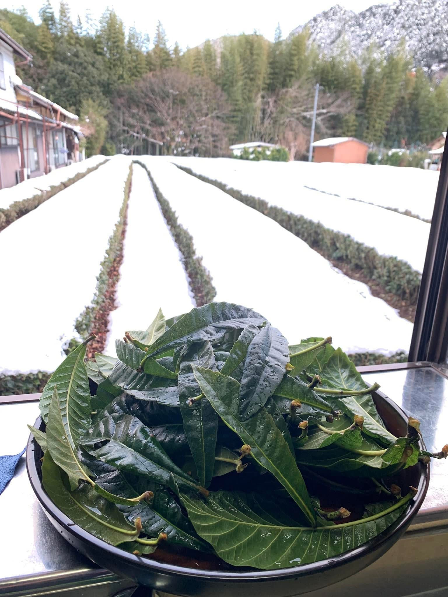 先月、雪❄️のなか、七宗町神渕の野生のビワの葉を収穫しました。1ヶ月、日陰干し、いい感じのビワ茶が完成しました☺️✋