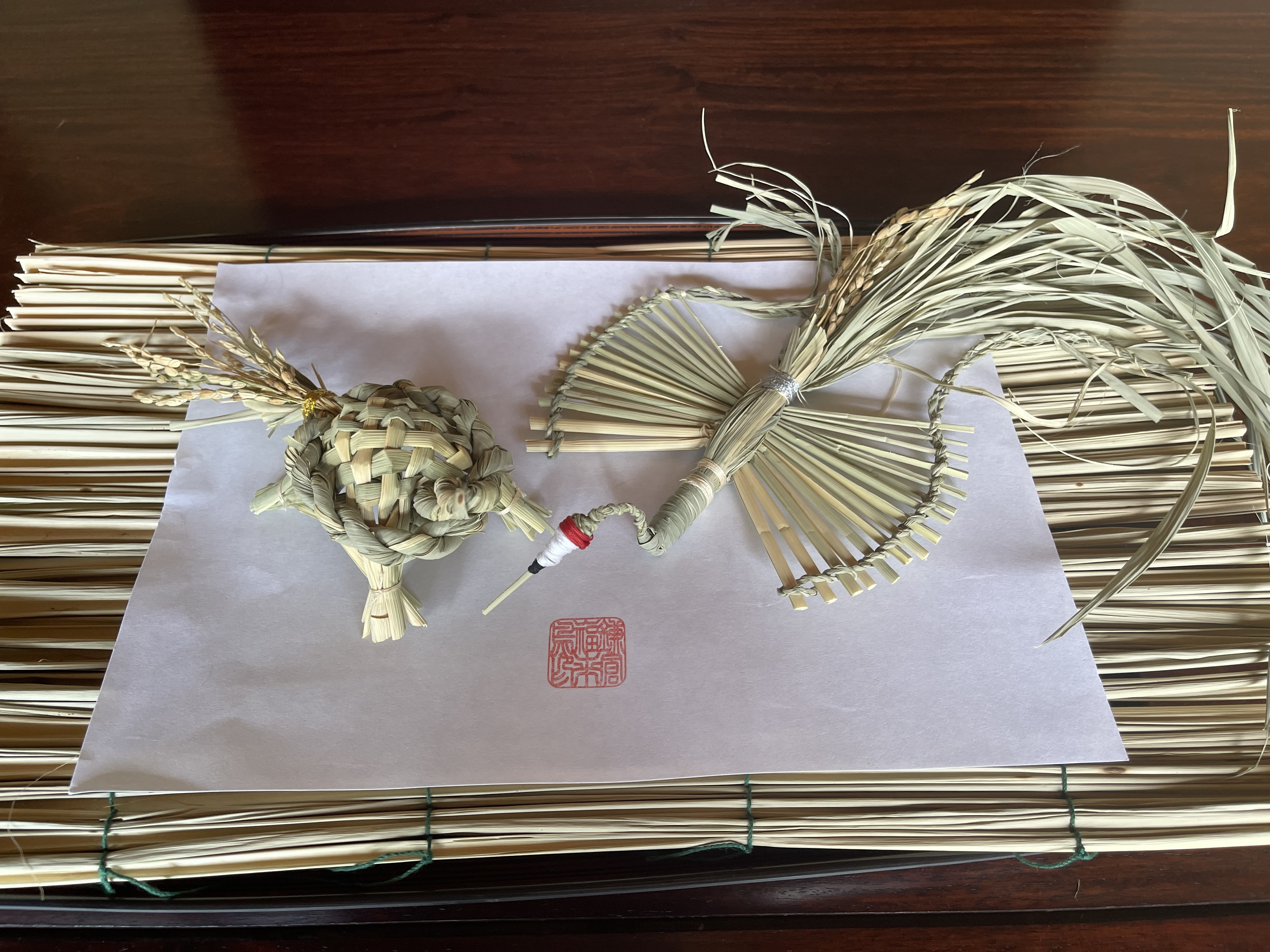 8月9日から上麻生での生活のはじまり。今日は、お隣のたか子さん84歳の誕生日です。お祝いに友人のるみ子さんが、真菰で鶴と亀を作ってくださいました。いつもお世話になっている金太郎さんご夫妻、これからも健康で仲睦まじく過ごせますように🙏✨