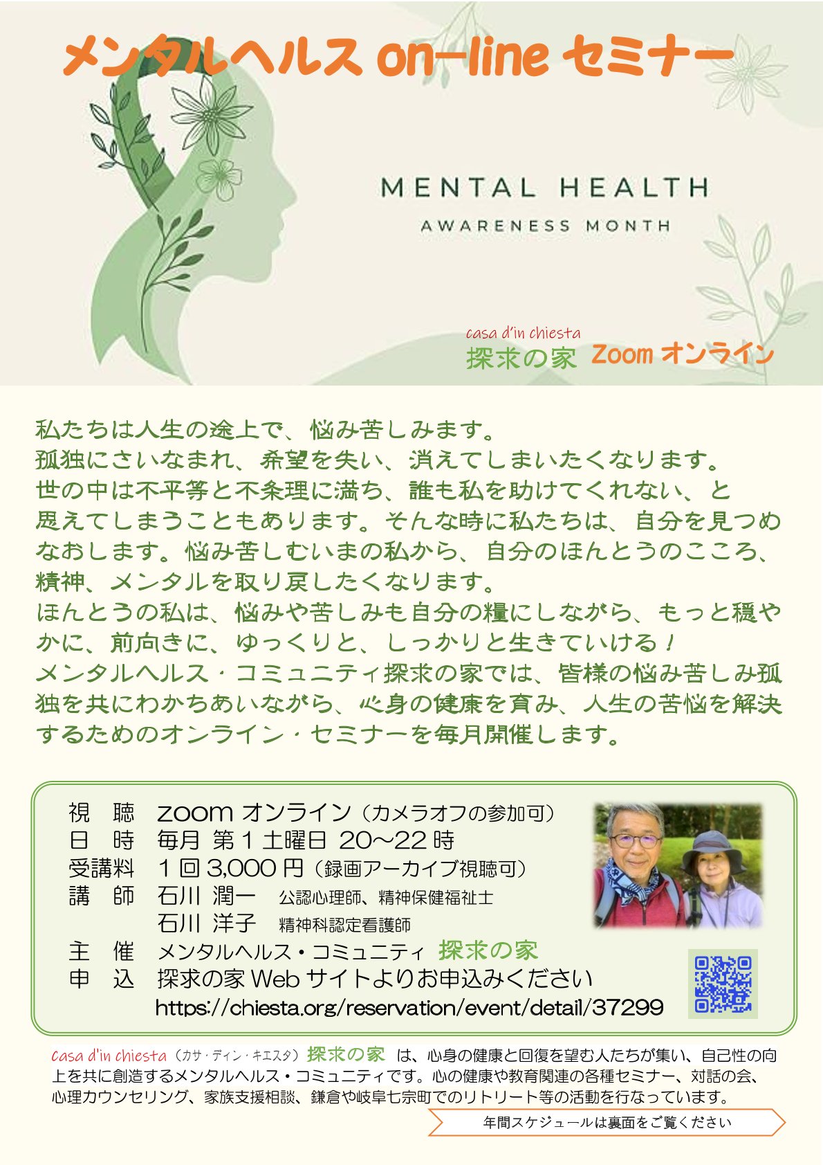5月は新たに「メンタルヘルスon-lineセミナー」と「シュタイナー『霊視と霊聴』on-line読書会」が始まります。