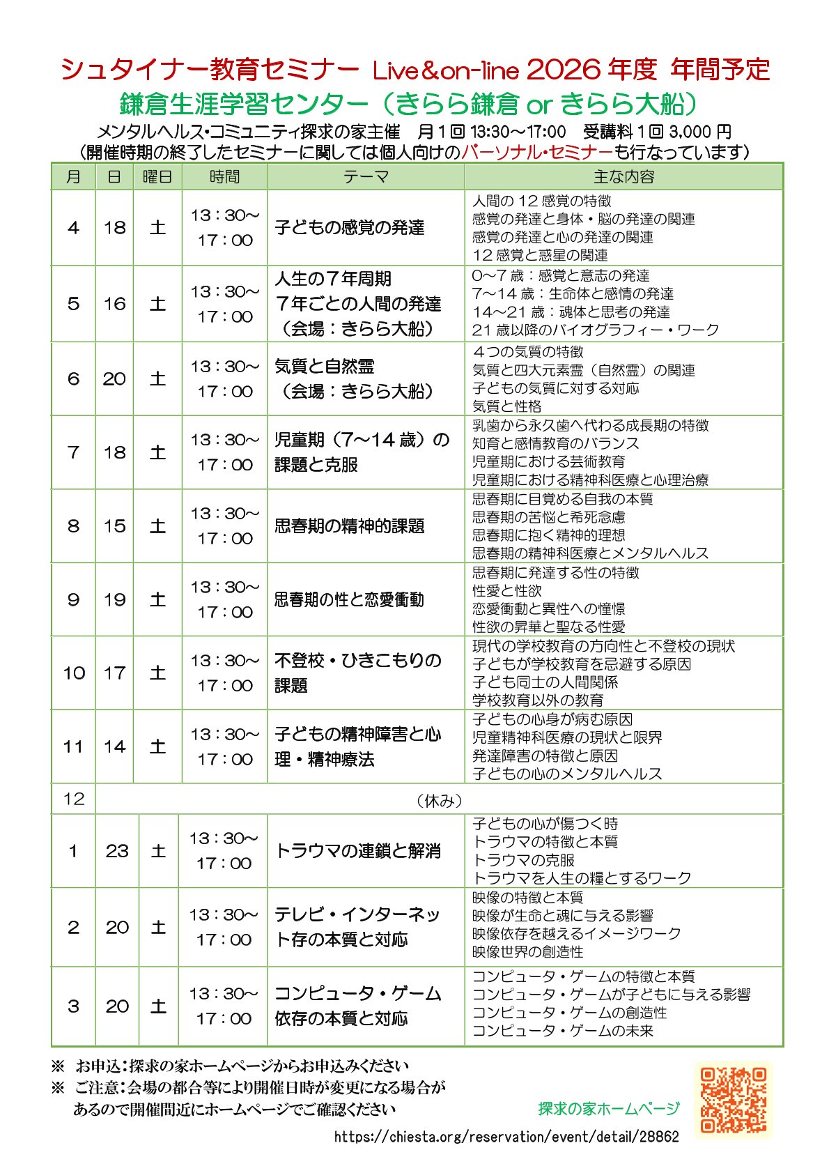 シュタイナー教育連続セミナー【Live&on-line】